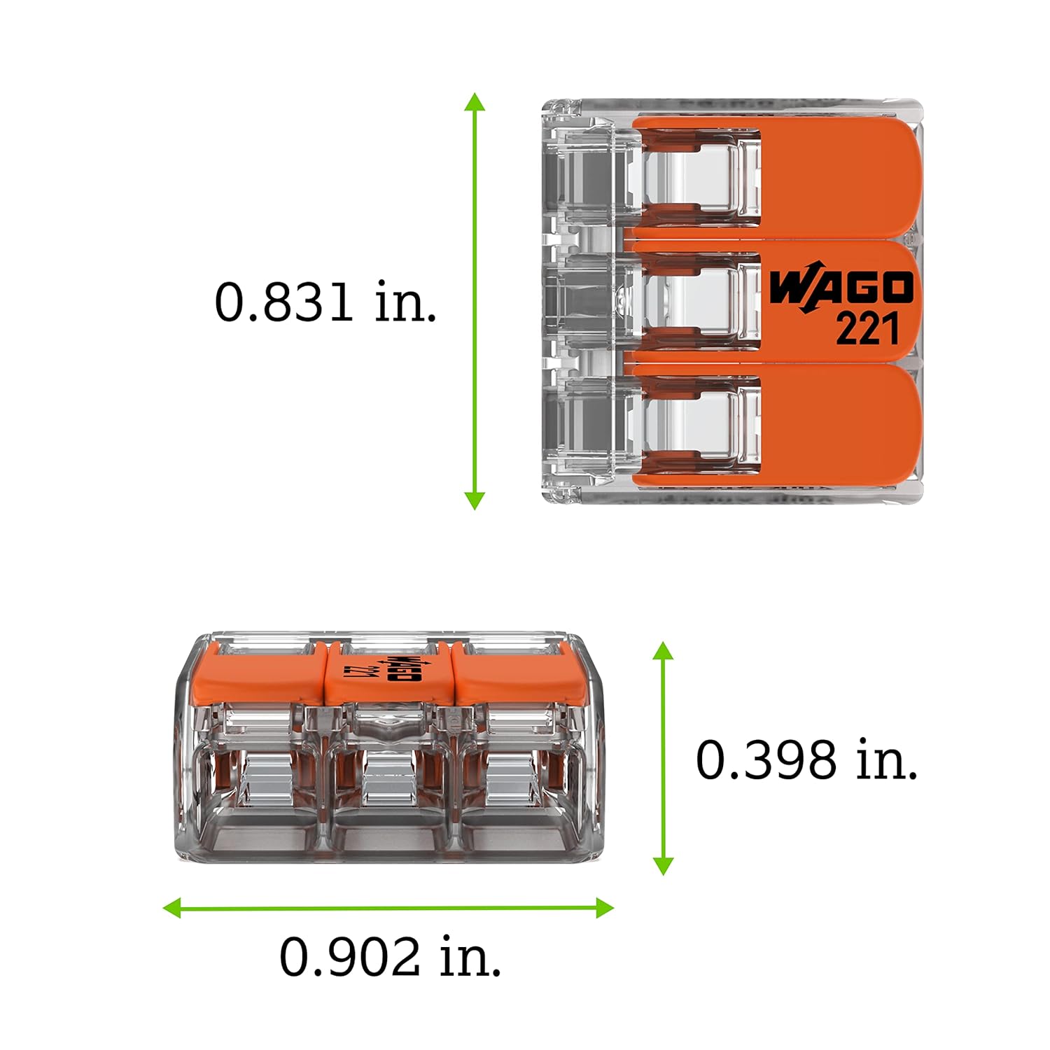 Pull the lever up, insert a conductor and push the lever back down – done! Tool-free and lever-actuated, WAGO's 221 Series wire splicing connectors easily, quickly and safely connect solid, stranded and fine-stranded conductors of different cross sections using two-, three-, and five-wire connectors. These connectors are available in two variants which accommodate 24-12 AWG and 20-10 AWG wire. Opening the levers on the 221 Series requires little effort. This means that you can connect conductors quickly – and without tools! While connecting the conductor, recessed handles on the sides ensure an easy, secure grip on the connector. For peace of mind, you can test the voltage from either side of the connector even when installed – one test point is in the conductor entry direction and the other is on the opposite side. This accessibility provides extremely convenient testing conditions, for a wide range of applications. In addition, mounting carriers are available for every 221 Series splicing connector. Each variant can be mounted vertically or horizontally. Simply secure the carrier by snapping it onto the DIN-rail, or with screws on smooth surfaces. Flexible mounting clamps simplify both connector insertion and removal. Conductors can be conveniently connected and removed before or after inserting a connector into the carrier. One test slot is always accessible to ensure compliance with VDE standards.
