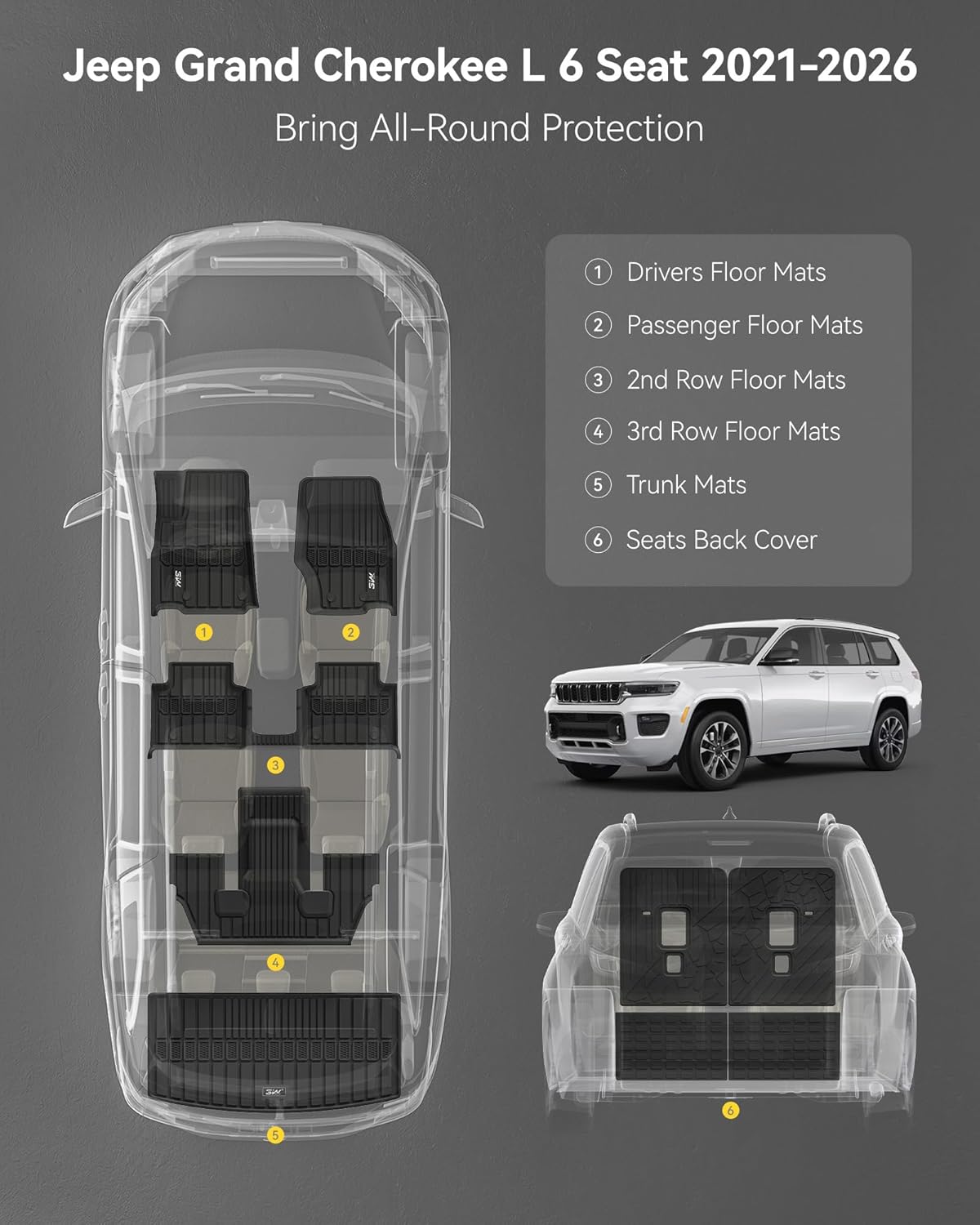 | Compatible with Vehicle Type | (6-Seats w/o 2nd Row Center Armrest Only), 2021-2026 Jeep Grand Cherokee L |
