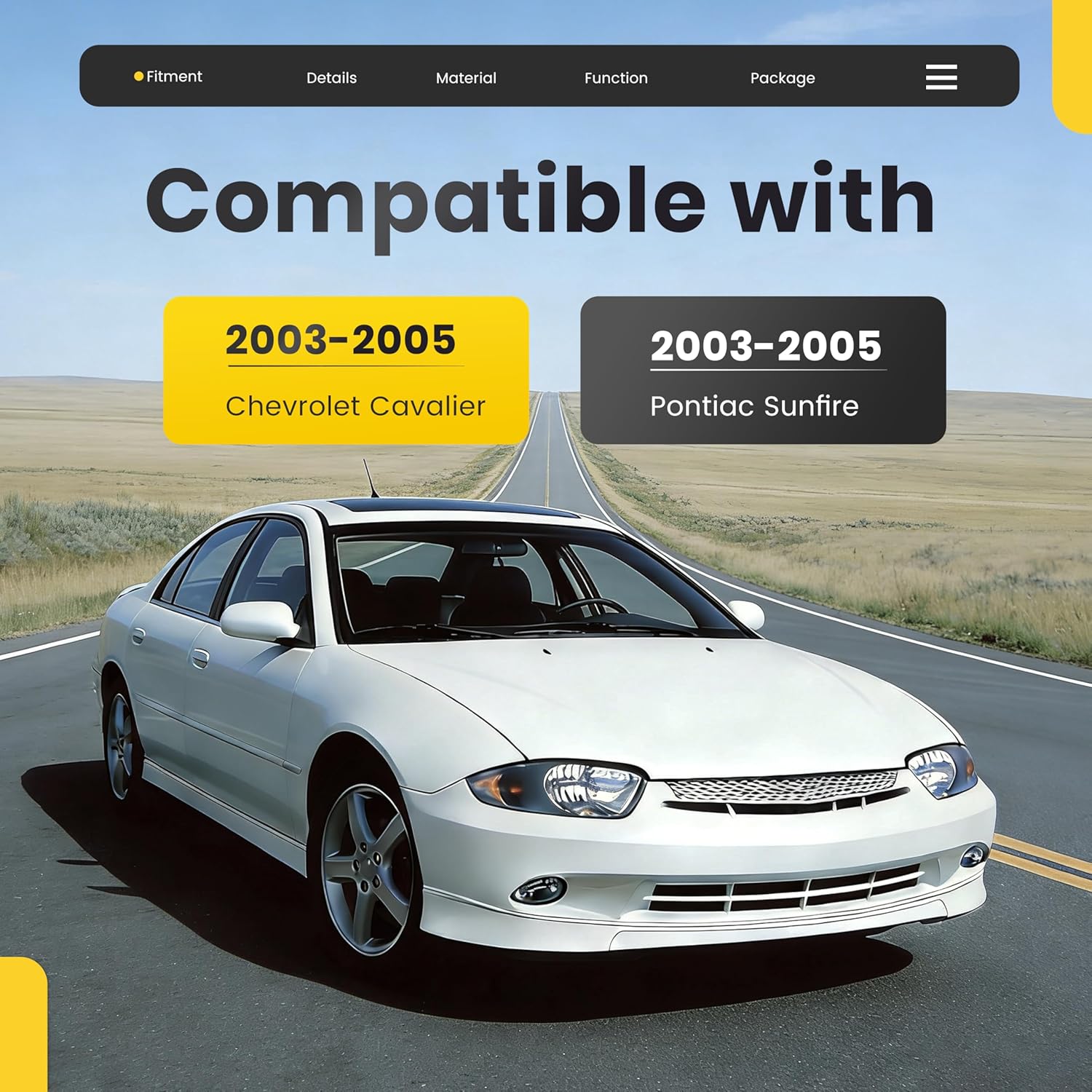 Fitment: Compatible with 2003-2005 Chevrolet Cavalier; compatible with 2003-2005 Pontiac Sunfire Material: High-quality steel with black finish to resist rust Function: Restoring proper alignment of the lower control arms, steering rack, and engine mounts while maintaining correct ride height and handling Installation: Lines up with factory bolt holes; installs with hardware and common hand tools Package: 1 x Front Subframe Crossmember. Hardware and installation instructions not included