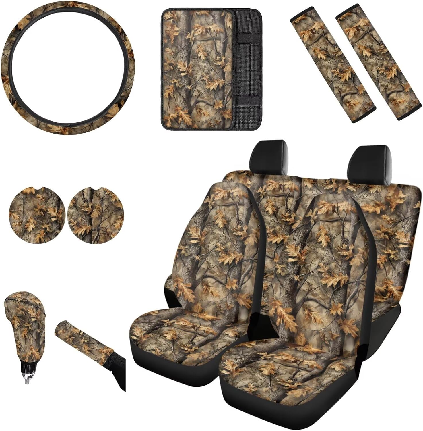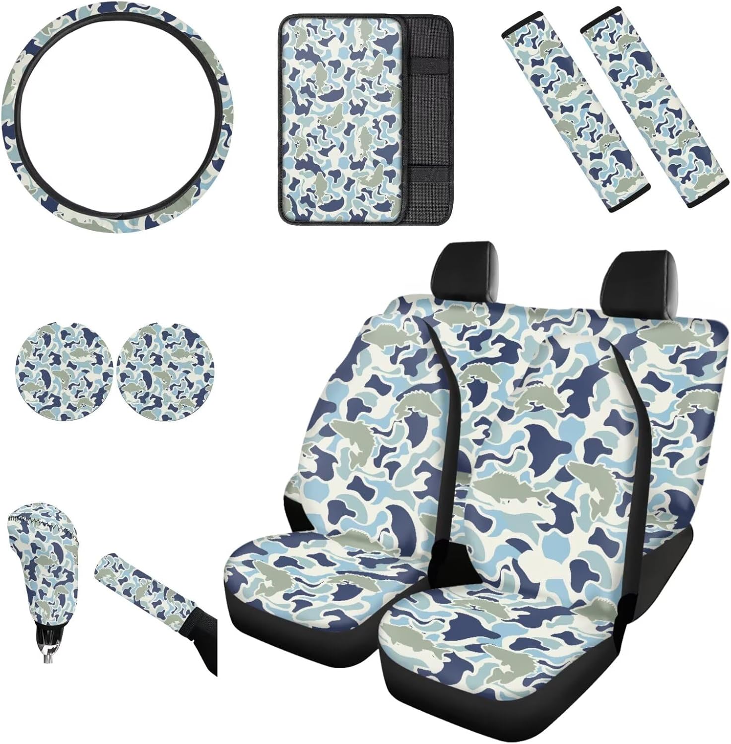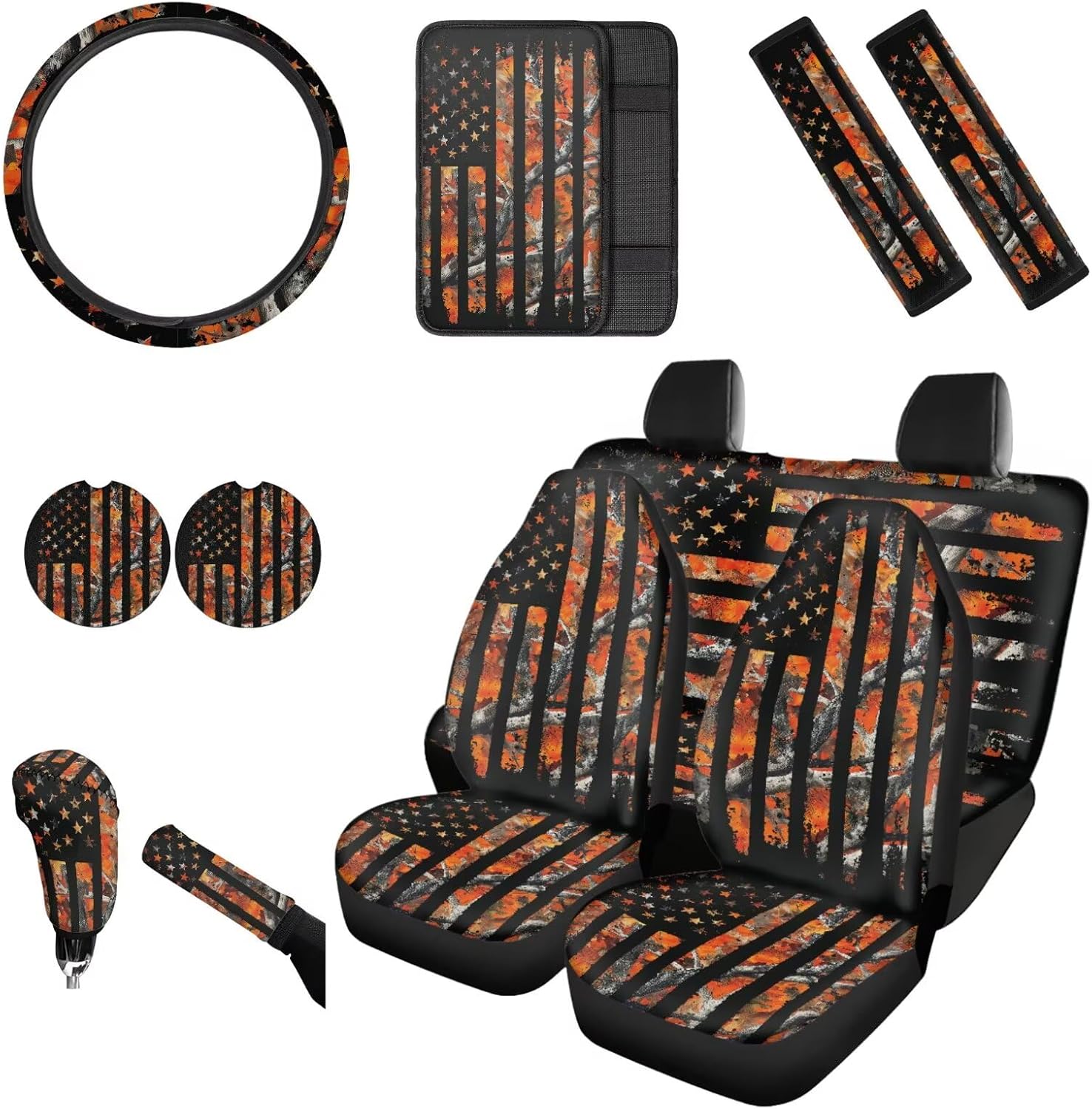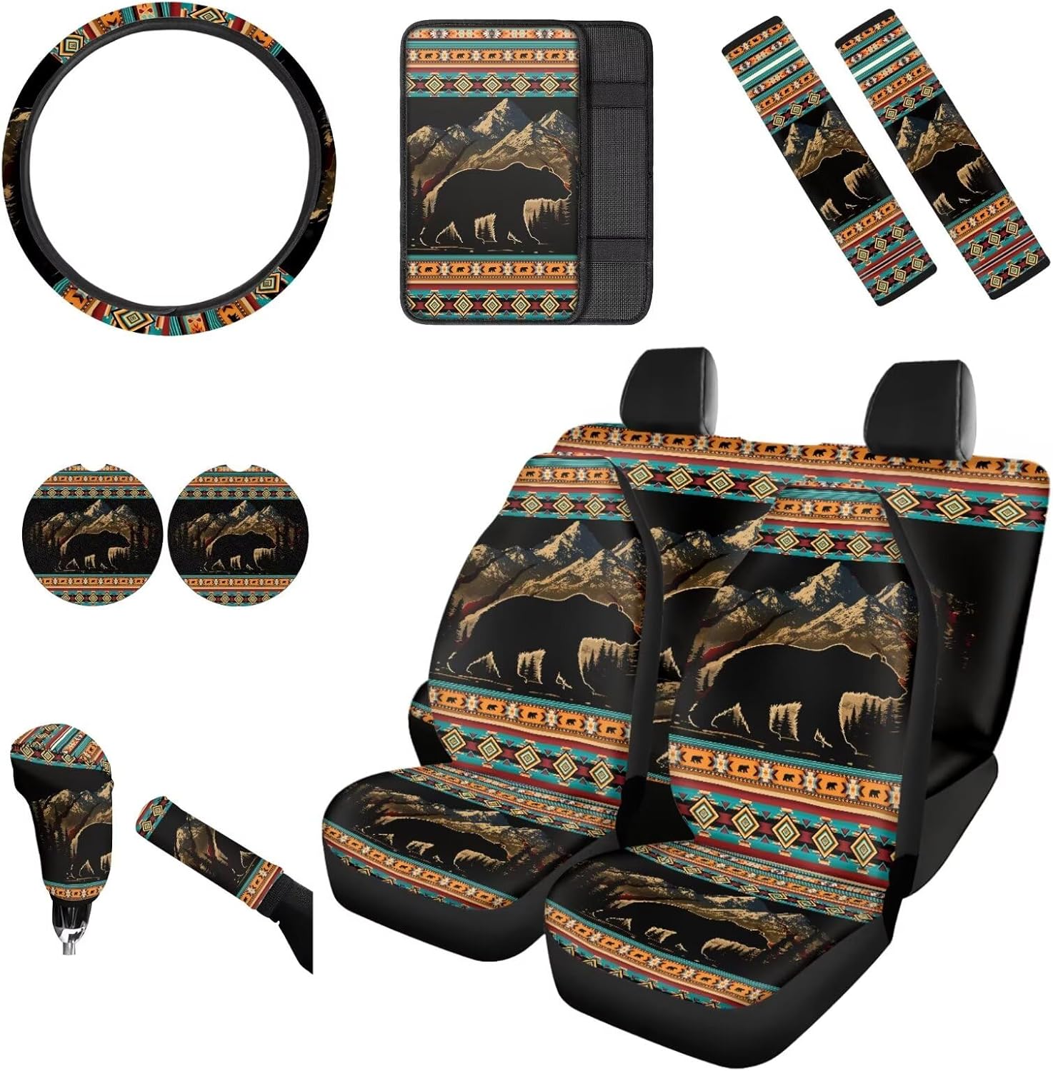 Welcome to Gearider Amazon Store Specifications: -4pcs Car Seat Covers: Made from polyester fabric, protect the interior seats from abrasions/tears/pet hair and spills -1pcs Car Steering Wheel Cover: Made from neoprene, provides moderate protection in both hot and cold weather -1pcs Car Armrest Cushion Pad: Made of polyester, equipped with 2 organizer pockets, suitable for holding your phone, keys, tissues, etc, say goodbye to clutter and keep your items within easy reach -2pcs Car Seat Belt Covers: Made of polyester and neoprene, protects your shoulders and clothing from the friction and irritation of the seat belt, keeps the neck comfortable -2pcs Car Gear Shift Knob Cover and Handbrake Grip Cover: Made of polyester, soft, stretchy, protect your car gear shift knob and handbrake lever from dust and dirt, splits, stains -2pcs Absorbent Cup Coasters: Made of Felt Surface and Galass Bottom Anti-Slip Back, which can easily absorb water from the outside of the cup, keep your car cup holder dry and clean STYLISH PATTERNS: We offer a variety of exquisite pattern designs for you to choose from, such as strawberry/ladybug/southwest aztec/highland cow/sea turtle/hippie flower/boho mandala/eagle/American Flag/butterfly/sunflower/skull/horse, etc, these special edition automotive interior accessories will add a touch of elegance and class to your vehicle EASY TO INSTALL: Elastic strap with hooks on the bottom of the seat covers, installation can be done at anywhere easily by following directions ATTENTION: Hand-wash or machine-wash with neutral detergent and cold water Dry in a well-ventilated, cool place away from direct sunlight to prevent color fading