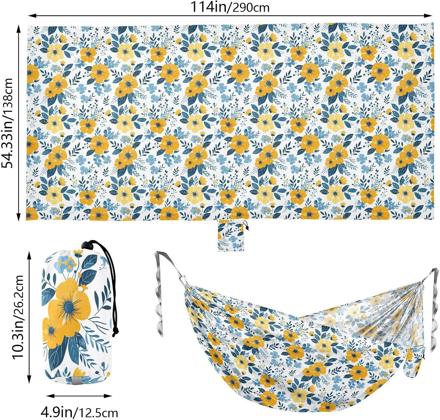 Large Size Width: 114in/290cm ×54.33in/138cm. Although Indoor Hammock is used as a hammock, the space is large enough to accommodatwo peoplo rest together. It can bear a load of 330LB/150KG.Material Description: Polyester. Rope Hammock fabric is made of high-strength and breathable 210T polyester taffeta, which has excellent wear resistance, tear resistance and breathability, ensuring comfort and safety. The climbing buckle is made of aluminum alloy, and three belt is made of high-density 600D imitation nylon webbing, which is sturdy with strong load-bearing capacity.Design: This hammock's webbing is equipped with multiple adjustable rings, making it convenient for users to adjust the height and position of the Hanging Hammock according to the actual situation. There are also hanging pockets along the edge of the hammock, which can be used to store personal items.Multi-scenario Applications: Seaside, Safari, back garden, indoor and outdoor, hiking or camping, etc. Indoor Hammock can be given as a present to friends and relatives who love outdoor sports.Family Gathering: When having an outdoor outing with friends and family, this Hanging Hammock can be a very interesting new experience. Assembling the hammock and trying it out are great opportunities to enhanche family atmosphere. The same is true of couples and newlyweds.
