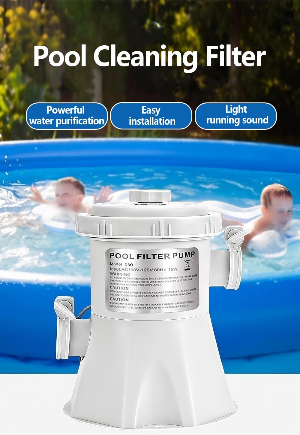 Keep Your Pool Crystal Clear with this Pool Filter – Powerful, Quiet & Easy to Use! Tired of dealing with dirty pool water? The Pool Filter is designed to keep your outdoor pool sparkling clean by efficiently removing leaves, sand, hair, and other debris. With its high-speed filtration system, you’ll enjoy clearer water in no time—perfect for hassle-free swimming and relaxation. ——Powerful Filtration – Multi-layer precision filter traps even fine debris for thorough cleaning. ——Ultra-Quiet Operation – Advanced noise-reduction technology ensures peaceful poolside moments. ——Easy Installation & Maintenance – Simple setup with all necessary accessories included; reusable filter cartridge saves time and money. —— Energy-Efficient & Safe – low-power performance. —— Complete Kit – Includes filter cartridge, hose clamps, filter mesh, inlet/outlet hoses, power cord, and a user manual. Ideal for above-ground pools, this Pool Filter is your go-to solution for a cleaner, healthier swimming experience. Order yours today and dive into pristine water!
