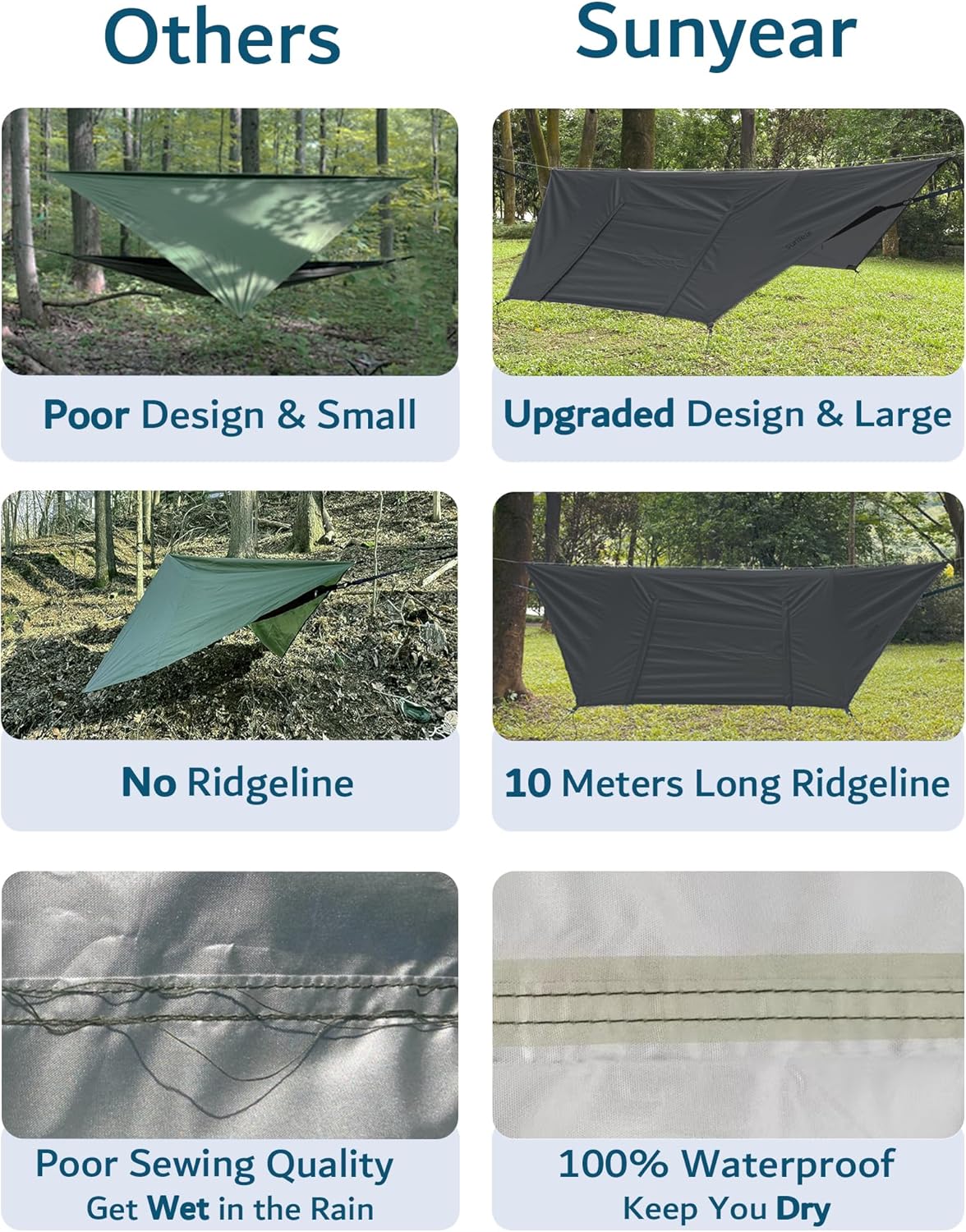| Included Components | 1 x Hammock Rain Fly, 1 x Hammock with Net, 2 x Adjustable Tree Straps, 2 x Foldable Aluminum Support Poles, 4 x Tent Stakes + Carry Bag |